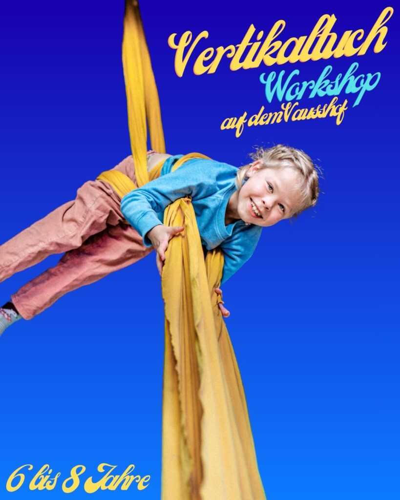Für diesen Kurs kommt die Artistin Christina Wintz aus Berlin auf den Vauß-Hof. Sicheres Klettern, Fußknoten und erste Figuren in der Höhe sind die Voraussetzung für die Teilnahme. Der Kurs geht je nach Jahreszeit über 3 oder 4 Tage.